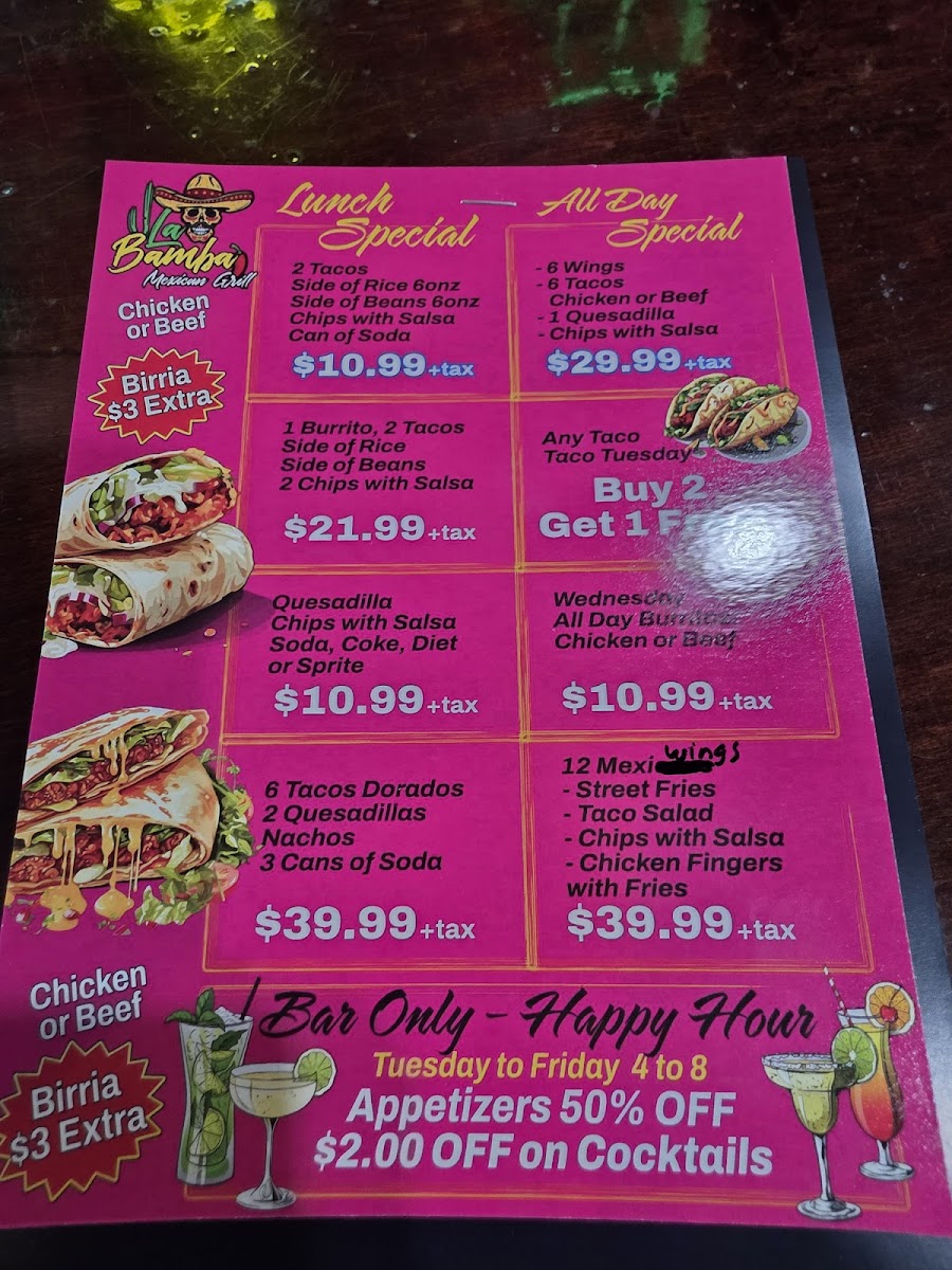 LaBamba Mexican Grill Menu